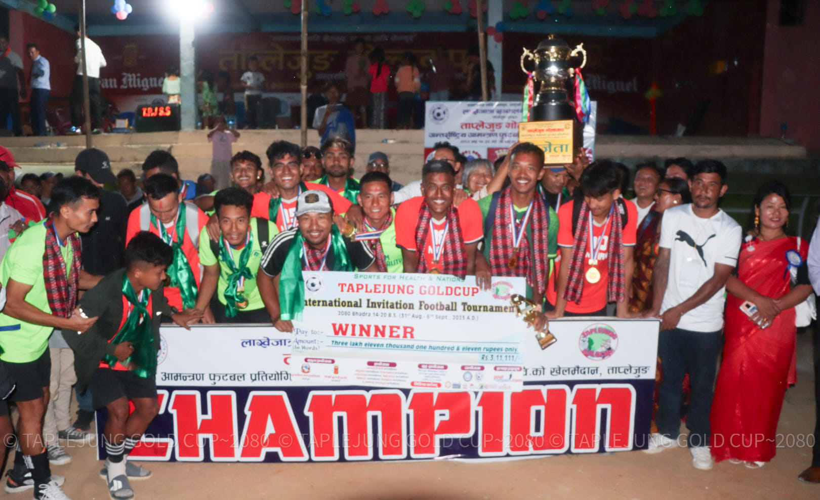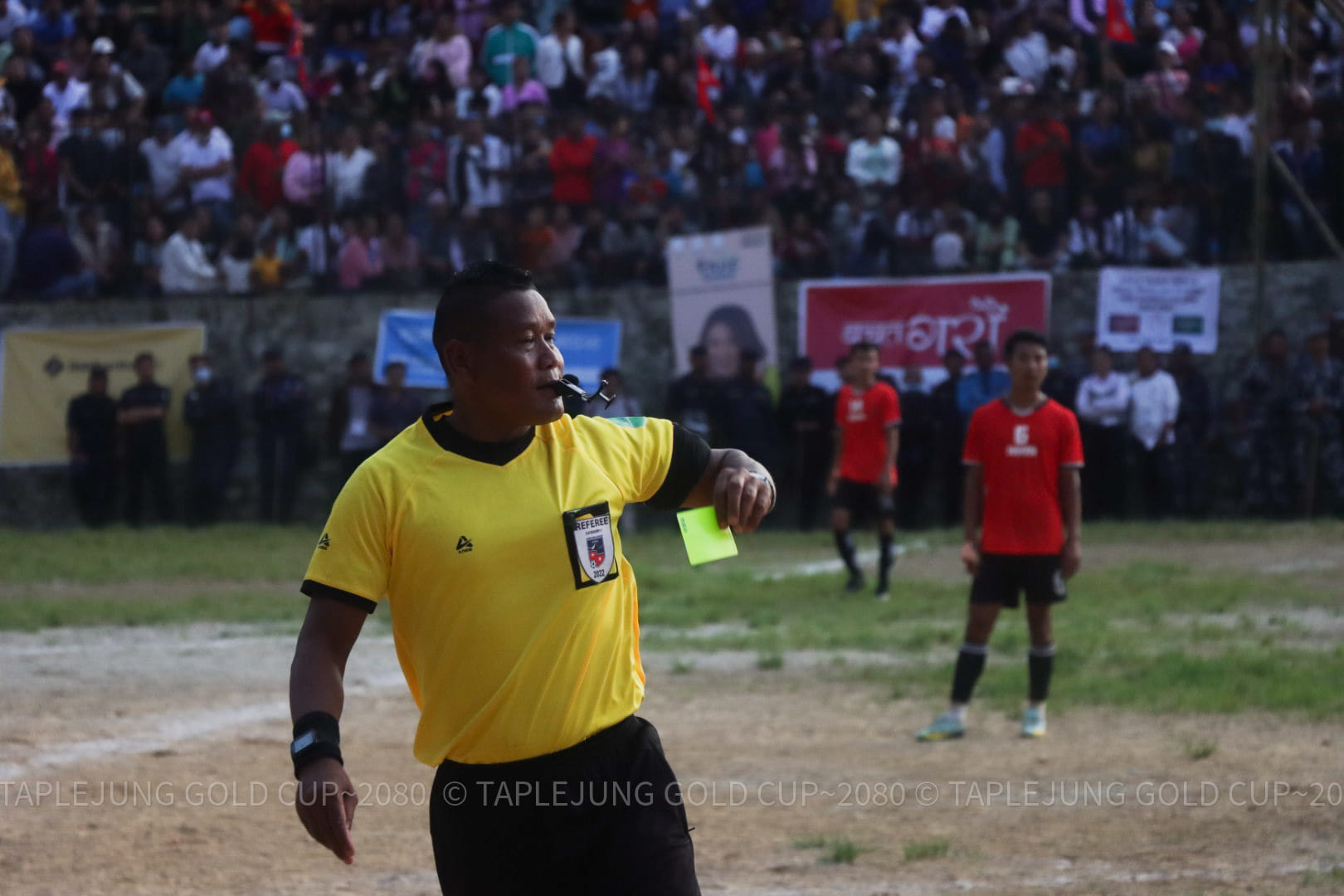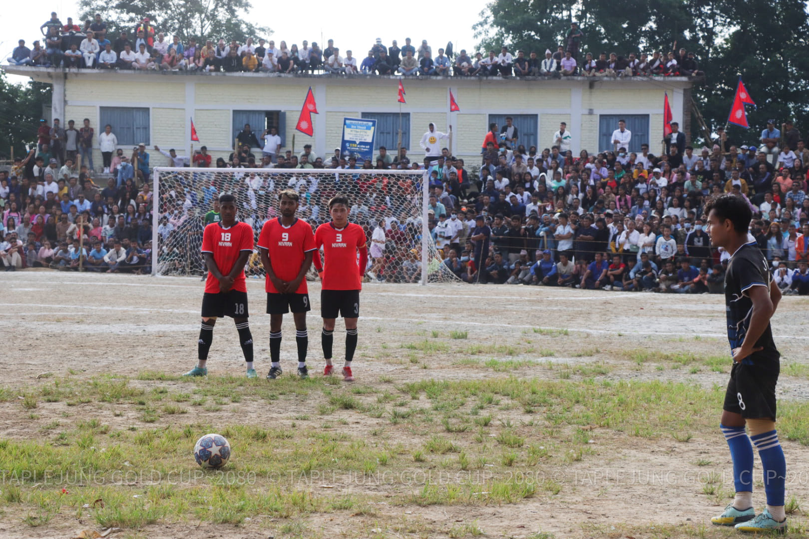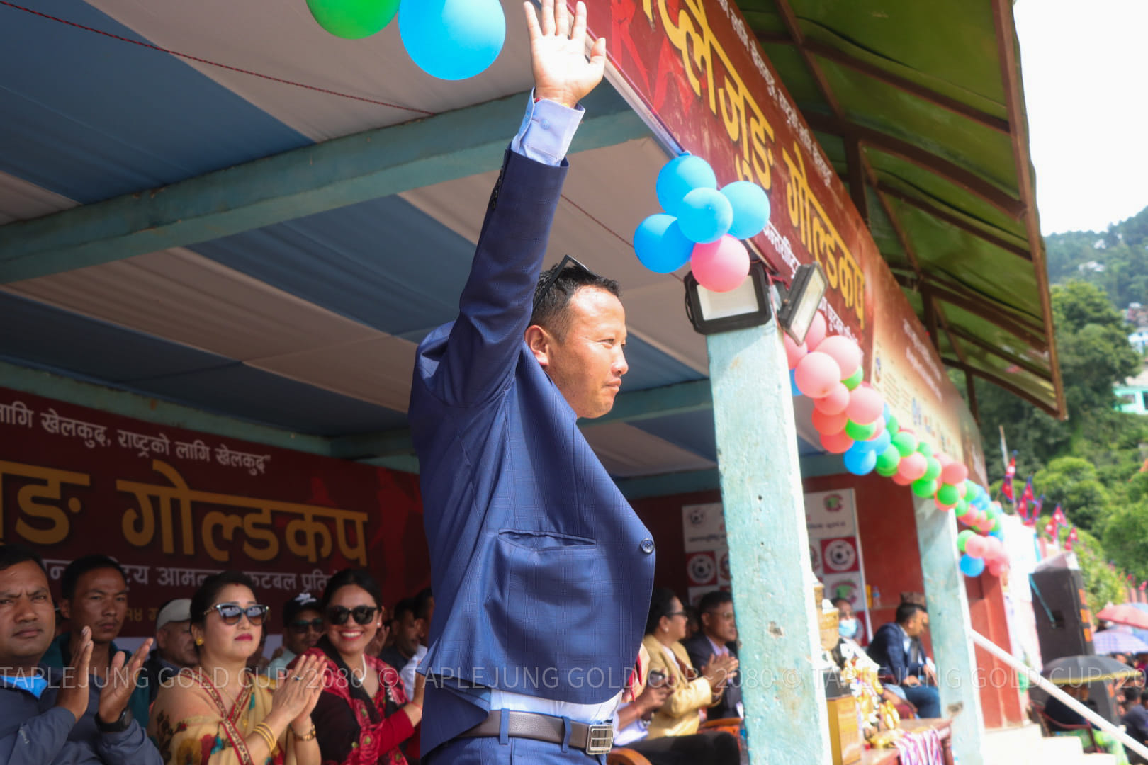 यता आर्थिक सहयोग जुटाउन भदौ ६ गते खोलिएको लक्ष्मी सनराईज बैंकस्थित खातामा न्यून रकम जम्मा भएको थियो । भदौ १० गतेसम्म हरेकको अनुहार मलिन थियो । तैपनी समितिका हरेकले भनिरहेका थिए,–फुटबल हुन्छ । अपवाद स्वरुप केहीले भन्थे,‘फुटबल त हिलोमा गर्ने नै भए । जिल्लाकै वेइज्जत हुने भयो ।’ तर नेतृत्व र समितिप्रति सिंगो समाज सकारात्मक थियो । नगद सहयोग गर्नेको विवरण क्षण–क्षणमा ताप्लेजुङ गोल्डकप पेजमा आउँथ्यो । बैङमा पैसा जम्मा नभएपनि खोजी–खोजी गएर आयोजकलाई नगद नै बुझाएको फोटोले आर्थिक समस्या छैन भन्ने झल्को दिन्थ्यो । फुङलिङ नगरपालिका नगरप्रमूख अमिर मादेनले ५ लाख रुपैयाँ कार्यपालिका बैठकबाट निर्णय गराएर दिने बचनले समितिलाई ठूलो ढाडस मिल्यो । आठराई त्रिवेणी गाउँपालिका अध्यक्ष दीपेन पोमू र मैवाखोला गाउँपालिका अध्यक्ष विजयप्रकाश वनेमले सामाजिक संञ्जालमै बधाई दिएर खेल आयोजना गर्न प्रेरित गर्यो । फुटबललाई नजिकबाट नियालेका एमालेका उपसचिव मणि पोमूदेखि प्रदेश सांसद खगेनसिंह हाङगाम, अग्रज खेलाडीहरु अम्बर श्रेष्ठ,अनन्त भट्टराई,यादब श्रेष्ठ र भलिबल पिता तेजप्रता सुब्बा र कृष्ण चोङवाङले समेत समितिलाई विश्वास गर्यो । असल नियतले सुरुवात भएको कामको अन्त्य पनि असल परिणामसहित हुन्छ भन्ने भावना बोकेकाको मनोबल बढ्नेगरि भदौ ११ गतेदेखि मौसमले पनि साथ दियो । अझ भनौ,प्रकती अनुकुल बन्न थाल्यो । भदौ ११,१२ र १३ गतेको दिनलाई आयोजकले साँच्चिकै खेल गर्न लायक मैदान बनाएरै छाडे । अध्यक्ष गुरुङले भने,‘हामीले भोक भनेनौ । न त झरि नै भन्यौ । न त निन्द्रा नै । न त तनाव । एकहोरो फुटबल मात्र भन्यौ ।’ कतिपयले त मैदानको दृश्यलाई टिक टकमा समावेश गरे । भदौ १३ गते मैदानमै पत्रकार सम्मेलन गरे । पत्रकार सम्मेलनमा गुरुङले भने,‘यो ताप्लेजुङ हो । यहाँ एकता छ । फुटबल क्रेज छ । फुटबल गर्ने तागत छ ।’ उनले भनेझै त्यो लोभलाग्दो एकता देखियो । त्यति मात्र कहाँ हो र ? पत्यारिलो नेतृत्वसहितको टिम र स्प्रष्ट भिजन भए जुनसुकै काम असम्भव छैन भन्ने पुष्टि गरिदियो । पाँचथरका अफिसियल तथा खेलाडीका अनुसार यो वर्षको मैदान २०४९ सालयताकै राम्रो हो । काबेली र गुप्तेदेखि ल्याएको डस र बालुवाले बनेको मैदान साँच्चिकै खेल्न लायक बन्यो । भुँईमा लडेर कुनै पनि खेलाडीले चोट बोक्नु परेन् । कोशी प्रदेश फुटबल सँघका महासचिव भगिरथ आले (मामा) का अनुसार यस पटक आयोजकले गज्जबै गर्यो । आलेले भने,‘भदौ १० गतेसम्म सामाजिक संञ्जालमा फोटो हेरेर नर्मश नै थिए । तर ११ र १२ गतेको कामले कहिले ताप्लेजुङ पुगौ भन्ने लाग्थ्यो ।’ फुटबल बुझेको मान्छेले नेतृत्व गर्दाको नतिजा कति फरक हुन्छ भन्ने सावित गर्यो । स्टेजमा प्रतिनिधिसभा सदस्य डा.तोषीम