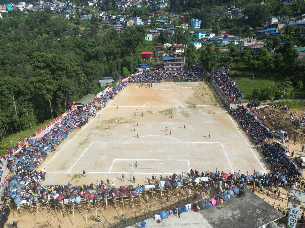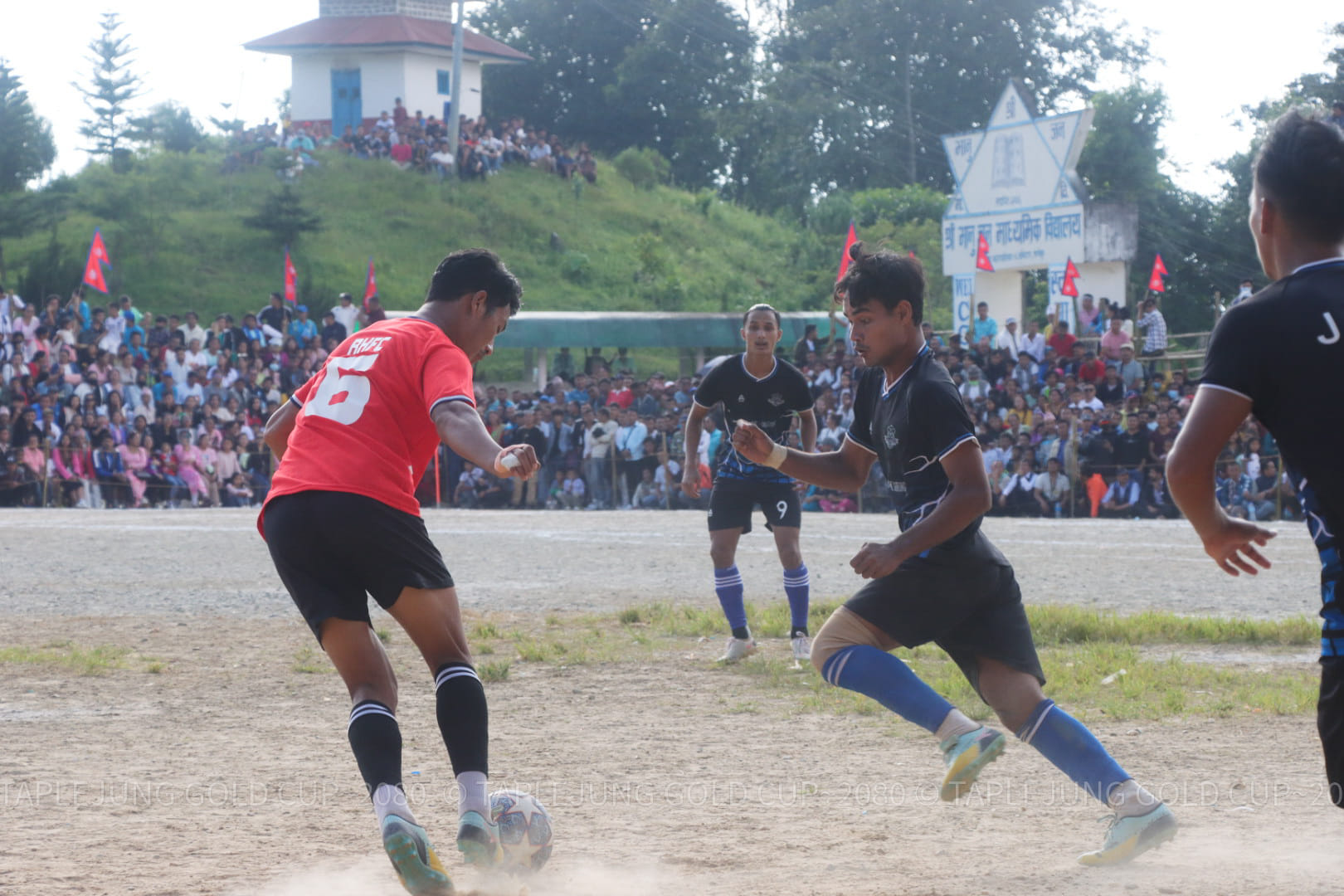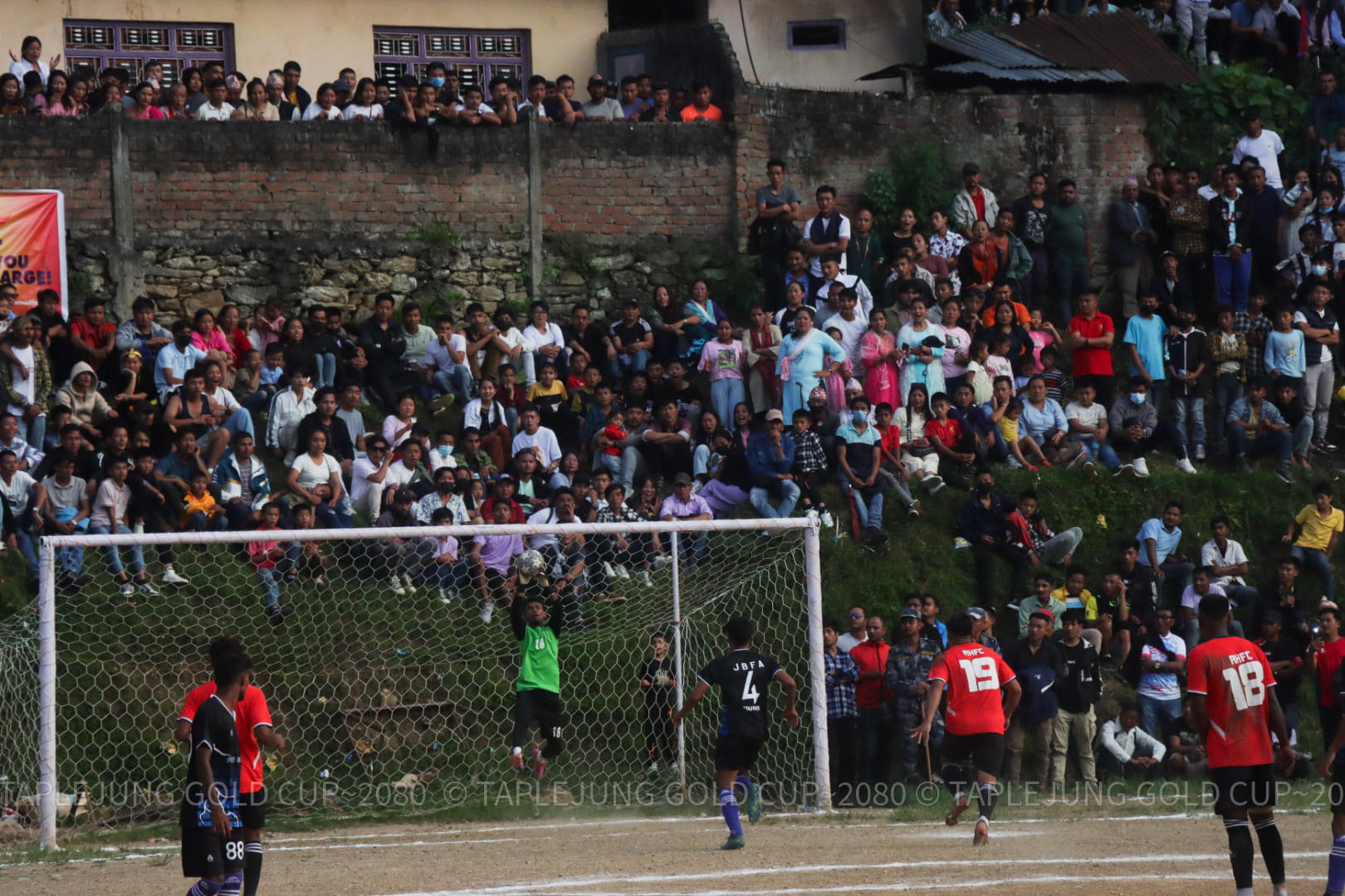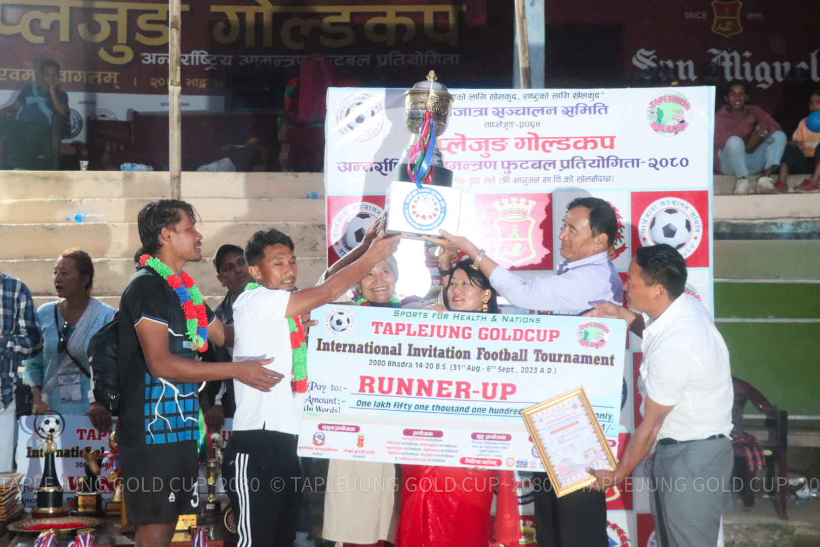 यता आर्थिक सहयोग जुटाउन भदौ ६ गते खोलिएको लक्ष्मी सनराईज बैंकस्थित खातामा न्यून रकम जम्मा भएको थियो । भदौ १० गतेसम्म हरेकको अनुहार मलिन थियो । तैपनी समितिका हरेकले भनिरहेका थिए,–फुटबल हुन्छ । अपवाद स्वरुप केहीले भन्थे,‘फुटबल त हिलोमा गर्ने नै भए । जिल्लाकै वेइज्जत हुने भयो ।’ तर नेतृत्व र समितिप्रति सिंगो समाज सकारात्मक थियो । नगद सहयोग गर्नेको विवरण क्षण–क्षणमा ताप्लेजुङ गोल्डकप पेजमा आउँथ्यो । बैङमा पैसा जम्मा नभएपनि खोजी–खोजी गएर आयोजकलाई नगद नै बुझाएको फोटोले आर्थिक समस्या छैन भन्ने झल्को दिन्थ्यो । फुङलिङ नगरपालिका नगरप्रमूख अमिर मादेनले ५ लाख रुपैयाँ कार्यपालिका बैठकबाट निर्णय गराएर दिने बचनले समितिलाई ठूलो ढाडस मिल्यो । आठराई त्रिवेणी गाउँपालिका अध्यक्ष दीपेन पोमू र मैवाखोला गाउँपालिका अध्यक्ष विजयप्रकाश वनेमले सामाजिक संञ्जालमै बधाई दिएर खेल आयोजना गर्न प्रेरित गर्यो । फुटबललाई नजिकबाट नियालेका एमालेका उपसचिव मणि पोमूदेखि प्रदेश सांसद खगेनसिंह हाङगाम, अग्रज खेलाडीहरु अम्बर श्रेष्ठ,अनन्त भट्टराई,यादब श्रेष्ठ र भलिबल पिता तेजप्रता सुब्बा र कृष्ण चोङवाङले समेत समितिलाई विश्वास गर्यो । असल नियतले सुरुवात भएको कामको अन्त्य पनि असल परिणामसहित हुन्छ भन्ने भावना बोकेकाको मनोबल बढ्नेगरि भदौ ११ गतेदेखि मौसमले पनि साथ दियो । अझ भनौ,प्रकती अनुकुल बन्न थाल्यो । भदौ ११,१२ र १३ गतेको दिनलाई आयोजकले साँच्चिकै खेल गर्न लायक मैदान बनाएरै छाडे । अध्यक्ष गुरुङले भने,‘हामीले भोक भनेनौ । न त झरि नै भन्यौ । न त निन्द्रा नै । न त तनाव । एकहोरो फुटबल मात्र भन्यौ ।’ कतिपयले त मैदानको दृश्यलाई टिक टकमा समावेश गरे । भदौ १३ गते मैदानमै पत्रकार सम्मेलन गरे । पत्रकार सम्मेलनमा गुरुङले भने,‘यो ताप्लेजुङ हो । यहाँ एकता छ । फुटबल क्रेज छ । फुटबल गर्ने तागत छ ।’ उनले भनेझै त्यो लोभलाग्दो एकता देखियो । त्यति मात्र कहाँ हो र ? पत्यारिलो नेतृत्वसहितको टिम र स्प्रष्ट भिजन भए जुनसुकै काम असम्भव छैन भन्ने पुष्टि गरिदियो । पाँचथरका अफिसियल तथा खेलाडीका अनुसार यो वर्षको मैदान २०४९ सालयताकै राम्रो हो । काबेली र गुप्तेदेखि ल्याएको डस र बालुवाले बनेको मैदान साँच्चिकै खेल्न लायक बन्यो । भुँईमा लडेर कुनै पनि खेलाडीले चोट बोक्नु परेन् । कोशी प्रदेश फुटबल सँघका महासचिव भगिरथ आले (मामा) का अनुसार यस पटक आयोजकले गज्जबै गर्यो । आलेले भने,‘भदौ १० गतेसम्म सामाजिक संञ्जालमा फोटो हेरेर नर्मश नै थिए । तर ११ र १२ गतेको कामले कहिले ताप्लेजुङ पुगौ भन्ने लाग्थ्यो ।’ फुटबल बुझेको मान्छेले नेतृत्व गर्दाको नतिजा कति फरक हुन्छ भन्ने सावित गर्यो । स्टेजमा प्रतिनिधिसभा सदस्य डा.तोषीम