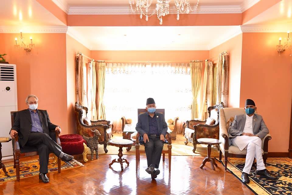 यस्तै काँग्रेसका तर्फबाट वरिष्ठ नेता रामचन्द्र पौडेल, उपसभापति विमलेन्द्र निधि, महामन्त्री पूर्णबहादुर खड्का, केन्द्रीय सदस्य रमेश लेखक लगायत सहभागी छन् । २७ बैशाखमा विश्वासको मत दिने तयारीमा रहेका ओलीले काँग्रेस नेतासँग छलफल गर्नुलाई अर्थपूर्ण रुपमा हेरिएको छ ।