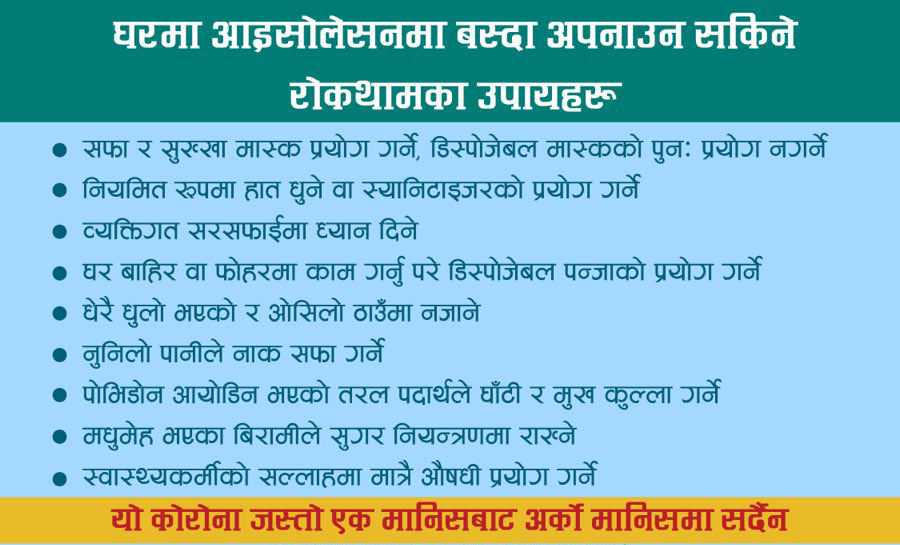 ‘संक्रमितमा सुगरको लेभल बढ्दा शरीर कमजोर हुन्छ,’ उनी भन्छन्, ‘अस्पतालमा मधुमेह भएका व्यक्ति, संक्रमित भएर होम आइसोलेशनमा बसेका थप समस्या आउनसक्छ, त्यसैले कालो ढुसीबाट जोगाउनका लागि दीर्घरोगी तथा मधुमेहका बिरामीलाई निगरानीमा राख्नुपर्छ ।’